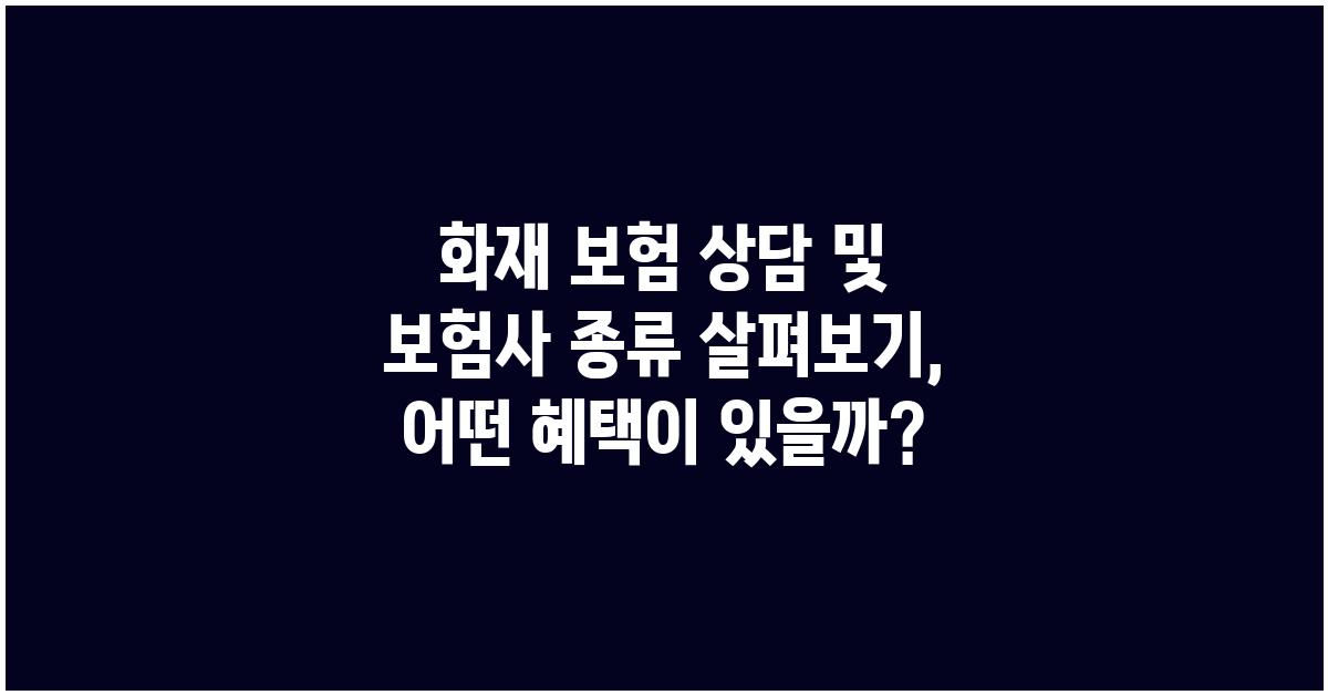 🔥 화재 보험의 필요성화재는 예기치 못하게 발생할 수 있는 재해 중 하나입니다. 한국에서도 매년 수많은 화재 사건이 발생하고 있어, 이에 대한 대비는 필수적입니다. 화재 보험은 이러한 위험으로부터 자산과 안전을 보호하는 중요한 수단으로 작용합니다. 화재 보험 상담 및 보험사 종류 살펴보기를 통해 여러분이 실제로 어떤 혜택을 받을 수 있는지를 자세히 알아보겠습니다.개인적으로, 화재 보험이 얼마나 중요한지 깨달은 순간이 있었습니다. 예전에 아는 지인의 집이 화재로 인해 전소된 적이 있었는데, 그때 주변에 있는 사람들이 피해를 보며 모두가 충격을 받았습니다. 이런 상황에 대비하려면 화재 보험 상담이 반드시 필요하다는 것을 느꼈습니다.🏢 화재 보험의 기본 구조화재 보험은 말 그대로 화재로 인한 손해를 보장해..